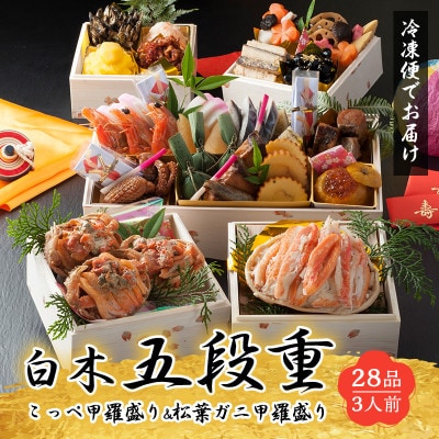 ・個食おせち 白木重二段重[[5.5寸 二段重(16.5cm角×個食2人前) 〔同梱物〕掛け紙・風呂敷・祝い箸2膳]]