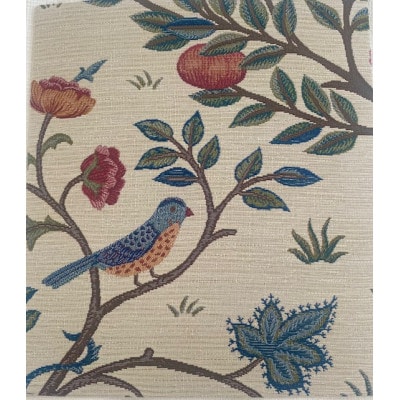 別荘の「ケルムスコット・マナー」で使われていたベッド掛けをヒントにした鳥と花に囲まれた木のデザイン。