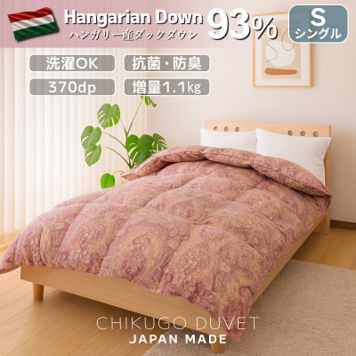 詰め物:ダックダウン85%、スモールフェザー15% (充填量1.2kg) ダウンパワー340以上