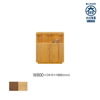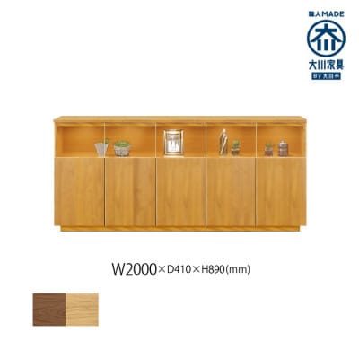 ダイニングキッチンやベッドルームにも調和するシンプルで上品な国産木製リビングボード。家電収納棚あり