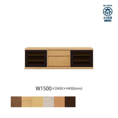 ウォールナット、ホワイトオーク、ブラックチェリー、メープルを使用した天然木のローボードです。天然木突板を使用しておりますので、1点ごとに木の表情の違いを感じられます。お部屋全体に温かみある上品な雰囲気を演出してくれます。