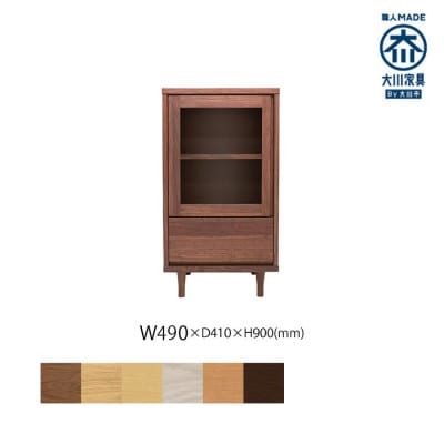 ダイニングキッチンやベッドルームにも調和するシンプルで上品な国産木製リビングボード。家電収納棚あり