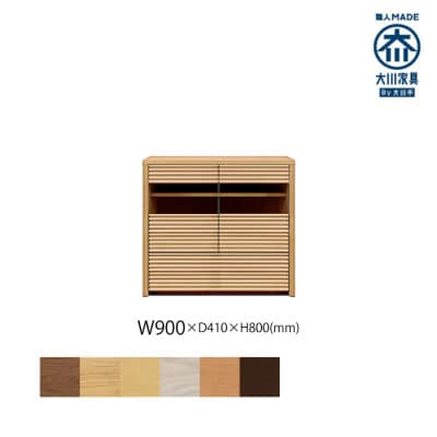 ダイニングキッチンやベッドルームにも調和するシンプルで上品な国産木製リビングボード。家電収納棚あり