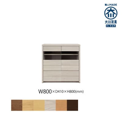 ウォールナット、ホワイトオーク、ブラックチェリー、メープルを使用した天然木のサイドボードです。天然木突板を使用しておりますので、1点ごとに木の表情の違いを感じられます。お部屋全体に温かみある上品な雰囲気を演出してくれます。