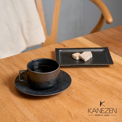 金善製陶所 黒サビ絞りマット 210カットプレート 2点セット 有田焼