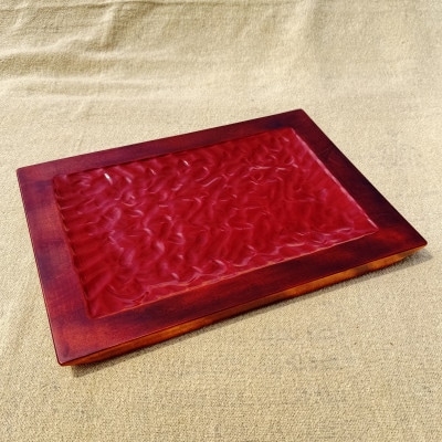 香川の伝統技法、後藤塗のお盆です。少し丸みを帯びた、角盆です。