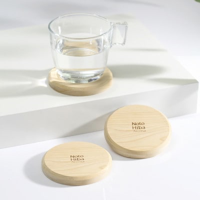 能登ヒバならではの爽やかなアロマ効果のある香りと明るい木目が特徴のコースターです。