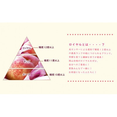 【ロイヤル】とは光センサーによる選別で糖度【12度以上】の最高ランクの桃にのみつけられるブランドです。