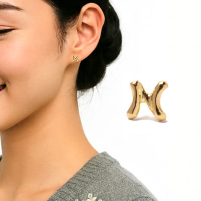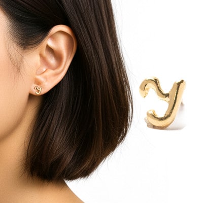 このイニシャルピアスは、18金の上質な輝きと、丸みのある立体感の美しいフォルムが魅力。デザイン性だけでなく、「想いを込めたお守り」としての意味も大切にしています。