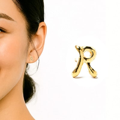 片耳の18Kゴールド イニシャルピアス 一文字のアルファベットが、あなただけの特別な意味を持つーーそんなパーソナルな想いを込めた「18金製イニシャルピアス(片耳)」です。