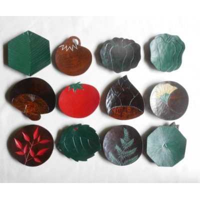 【漆器】葉の柄の豆皿 6枚と果物の柄の豆皿 5枚 計11枚セット(各直径 約8~11cm)