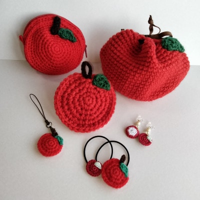 長和町の名産品であるマルメロをモチーフにしたアクセサリーと小物の詰め合わせセットです。