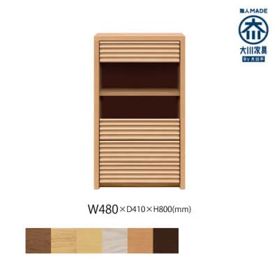 ダイニングキッチンやベッドルームにも調和するモダンな国産木製ルーバーリビングボード。家電収納棚あり。