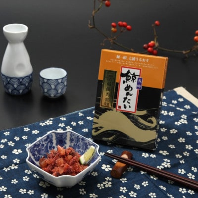 鯨のコリッとした食感に明太子のほどよい辛さが醸しだす伝統の味と味とのハーモニーをご賞味ください。