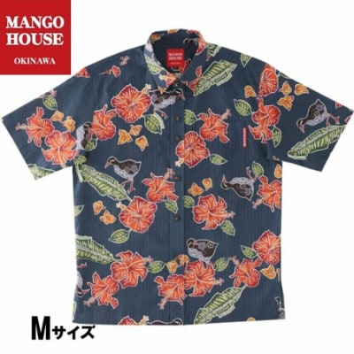 【マンゴハウスのかりゆしウェア】メンズ Mサイズ ネイビー 月桃ブルーム 251166