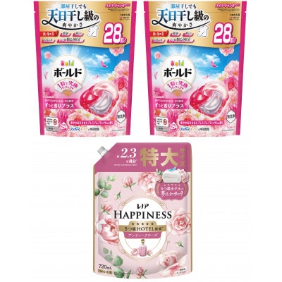 アリエール ジェルボールプロ 部屋干し用28個入り & レノアハピネス ローズ720mL つめかえ用