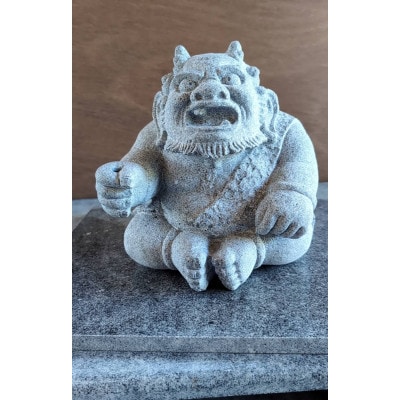 高松市が誇る庵治石細目で作られたブルドッグの置物です。庵治石細目は御影石の最高峰とも呼ばれ世界一とも言われる銘石です。ふてくされた顔立ち、愛嬌のある後ろ姿が特徴です。細かな細工が施された丁寧な仕事ぶりは香川県伝統工芸士で石材彫刻60年のキャリアを持つ溝渕清美の作品です。