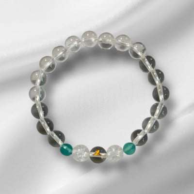 白水晶(8mm×19個)、ブルーカルセドニー(6mm×2個)、クラッククオーツ(8mm×2個) 18cm