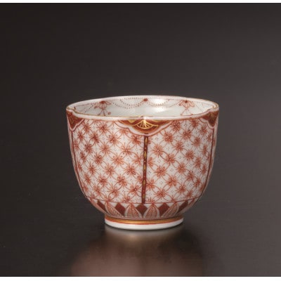 ・K9-641 ポット急須・赤絵丸紋[横15×高11cm 容量 250ml 網付、紙箱]
