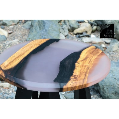 和歌山市で制作しているこちらのサイドテーブルは、一枚板の木材とレジンが見事に調和したデザインが魅力です。木材の自然な木目模様とレジンの透明感や色味が織りなす個性的な美しさは、ナチュラルテイストにもモダンテイストにもマッチします。
