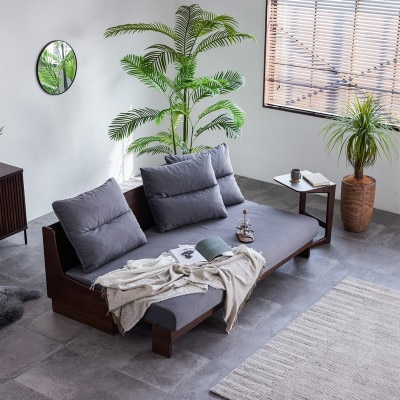 低めのサイドフレームと脚元の空間設計により、ソファに座りながらくつろぐとき、サイドテーブルを手前まで引き寄せて使用できます。