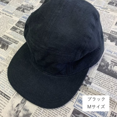 麻素材 ジェットキャップ(ブラック ベルギーリネン・麻 サイズL)