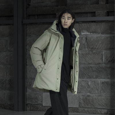 表地にダウンシームがないため、ジャケットスタイルにもあわせやすいソリッドなデザインです。