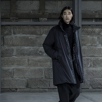 表地にダウンシームがないため、ジャケットスタイルにもあわせやすいソリッドなデザインです。