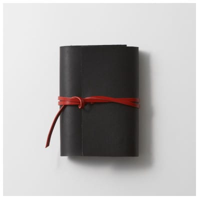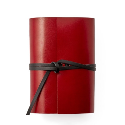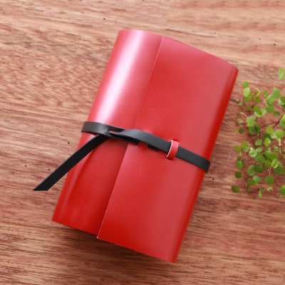 大きな一枚革を革紐でくるりと巻き留めるデザインです。
