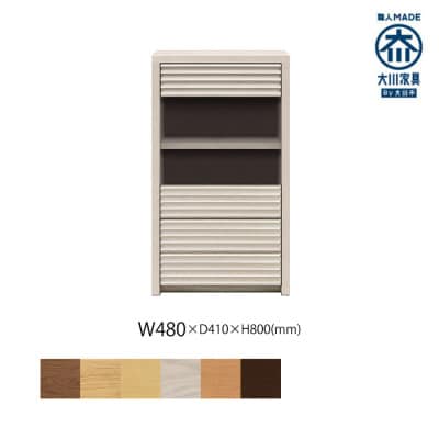 ダイニングキッチンやベッドルームにも調和するシンプルで上品な国産木製リビングボード。家電収納棚あり