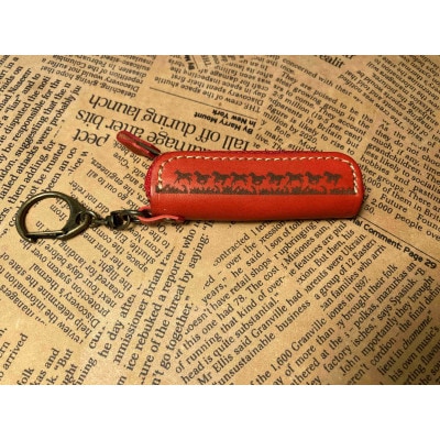 馬9頭を革に焼き印「うまくいく」という縁起の良いデザインのリップケースです。