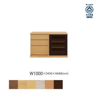 ダイニングキッチンやベッドルームにも調和するシンプルで上品な国産木製リビングボード。家電収納棚あり