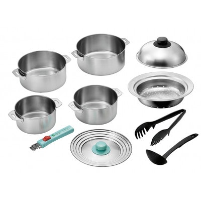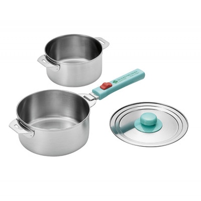 本体は丈夫で耐久性に優れたステンレス製の鍋で、着脱式のハンドル付きで収納に便利です。