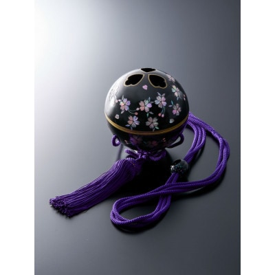 吊香炉『薫珠』(R)桜(青貝螺鈿)本漆・真塗または掻合塗(黒)大14cm 紫色房・紐