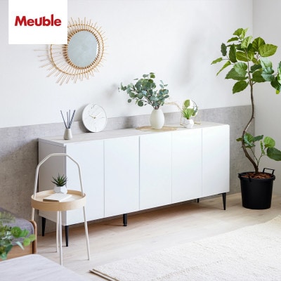 サイドボード 幅145cm リスボン グラスホワイト×マーブルホワイト【モーブル/大川家具】