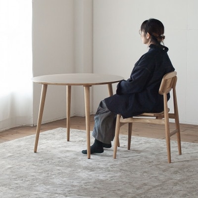 モルタル調メラミン材のラウンドダイニング[80cm]木部オーク色