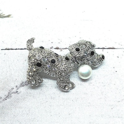 ブローチ・大きなネコ(淡水本真珠・ボタン)R 1970