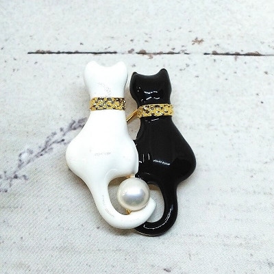 ・ブローチ・大きなネコ(淡水本真珠・ボタン)R[1点]