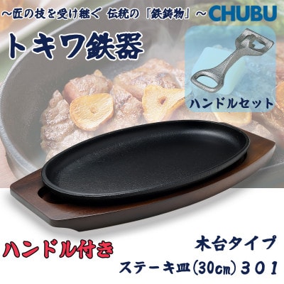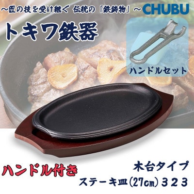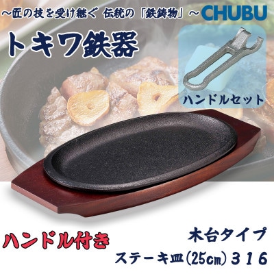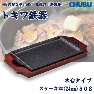 トキワ鉄器 ステーキ皿&ハンドル付き(木台タイプ) 角判小24cm 308 028-1359