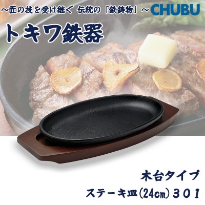 トキワ鉄器 ステーキ皿(木台)IH対応 小判大30cm 301 ハンドル無 028-1386