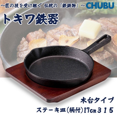 トキワ鉄器 ステーキ皿&ハンドル付き(木台タイプ)IH対応 丸判小17cm 304 028-1375