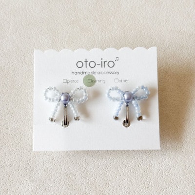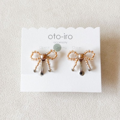 きゅっと結んだ小さなビーズリボンのピアス【mini ribbon/パールホワイト】