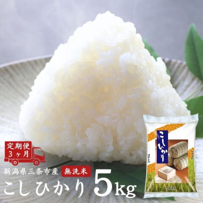 ・令和7年産 新潟県三条市産無洗米コシヒカリ毎月5kgずつ「3か月」お届け。