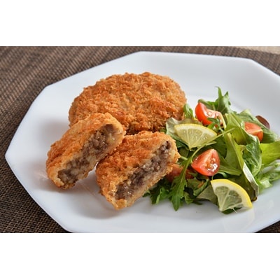 あがの姫牛のひき肉がたっぷり入ったビーフコロッケは、お肉の甘みや旨みを存分に感じられる贅沢な味わいです。ジューシーな逸品ビーフコロッケを是非ご賞味ください。