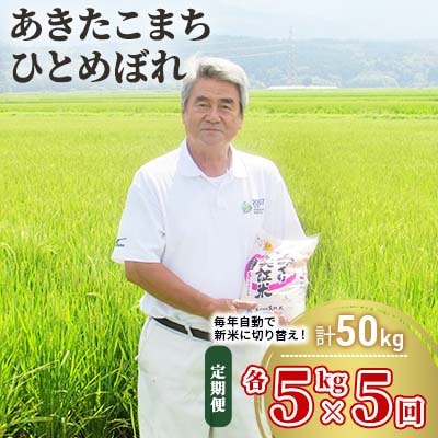 定期便8回 あきたこまち・ひとめぼれ 10kg (各5kg) 令和7年産[No.5685-2382]