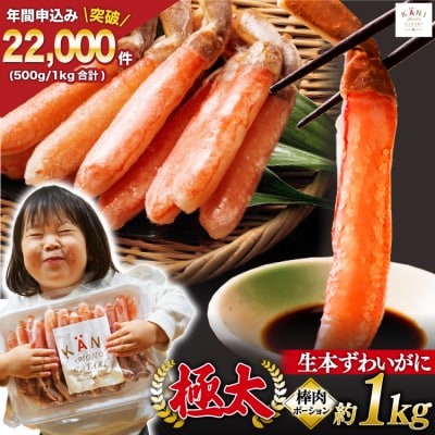 ・まるずわいがに1kg、ずわいがに棒肉ポーション500g
