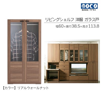 単独使用以外にもローチェスト(FL〇-75S)の上に連結して【高さ228cm】の壁面スタイルも可能です。