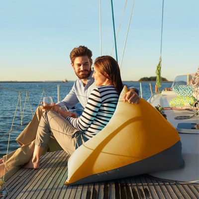 レジャーやアウトドアのシーンもYogiboのビーズソファを持ち込んで快適に。