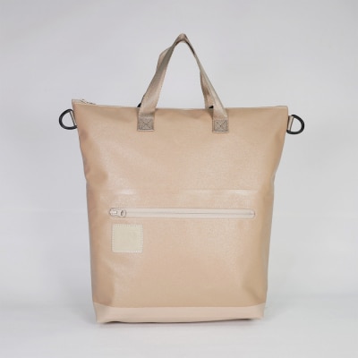 ハリのあるナイロン素材を使用したリュック。