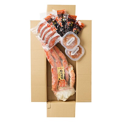 【内容量】たらばがに約1.8kg~2.0kg×1肩(氷含む)※冷凍状態(殻付き)を計上した重量となります。紅鮭5切真空(1切約50g)×4P、いくら醤油漬け70g×2P